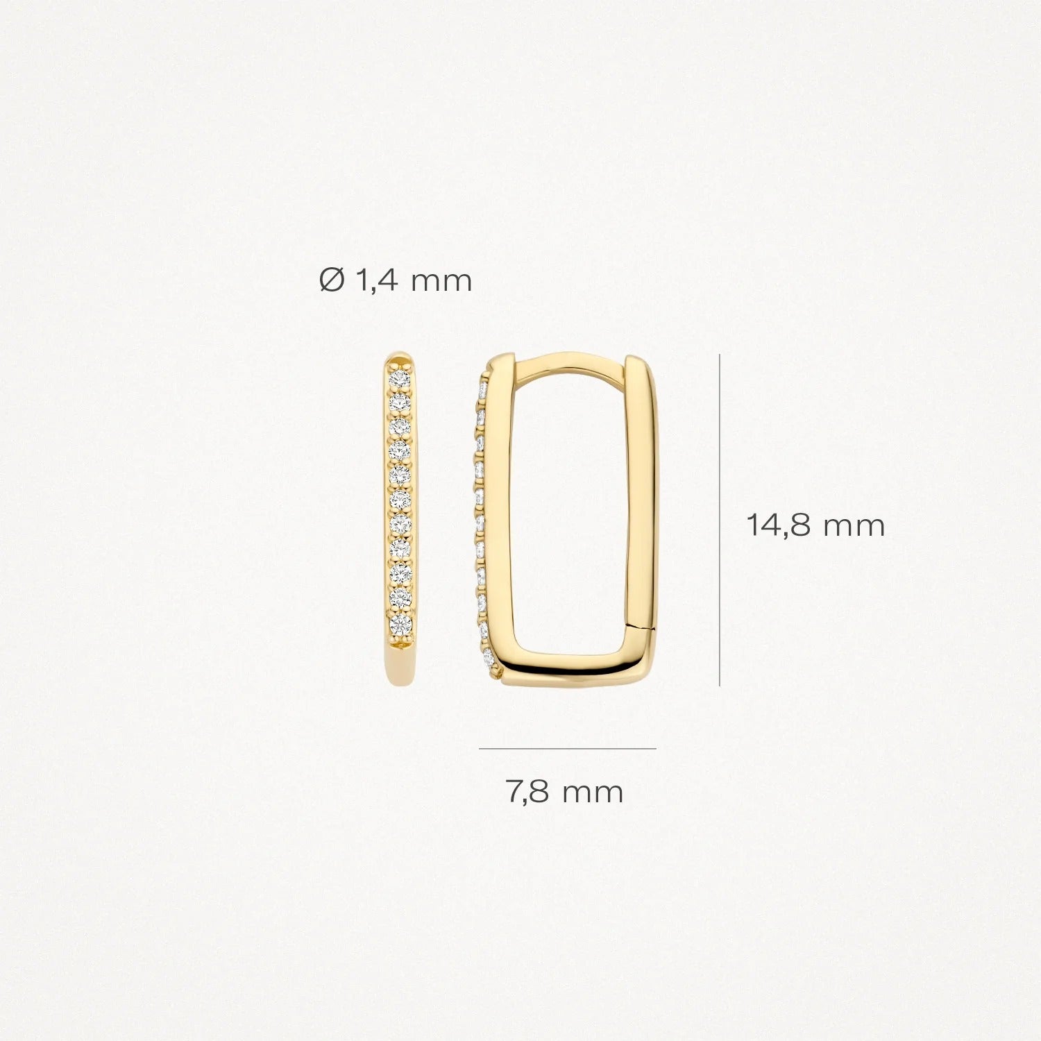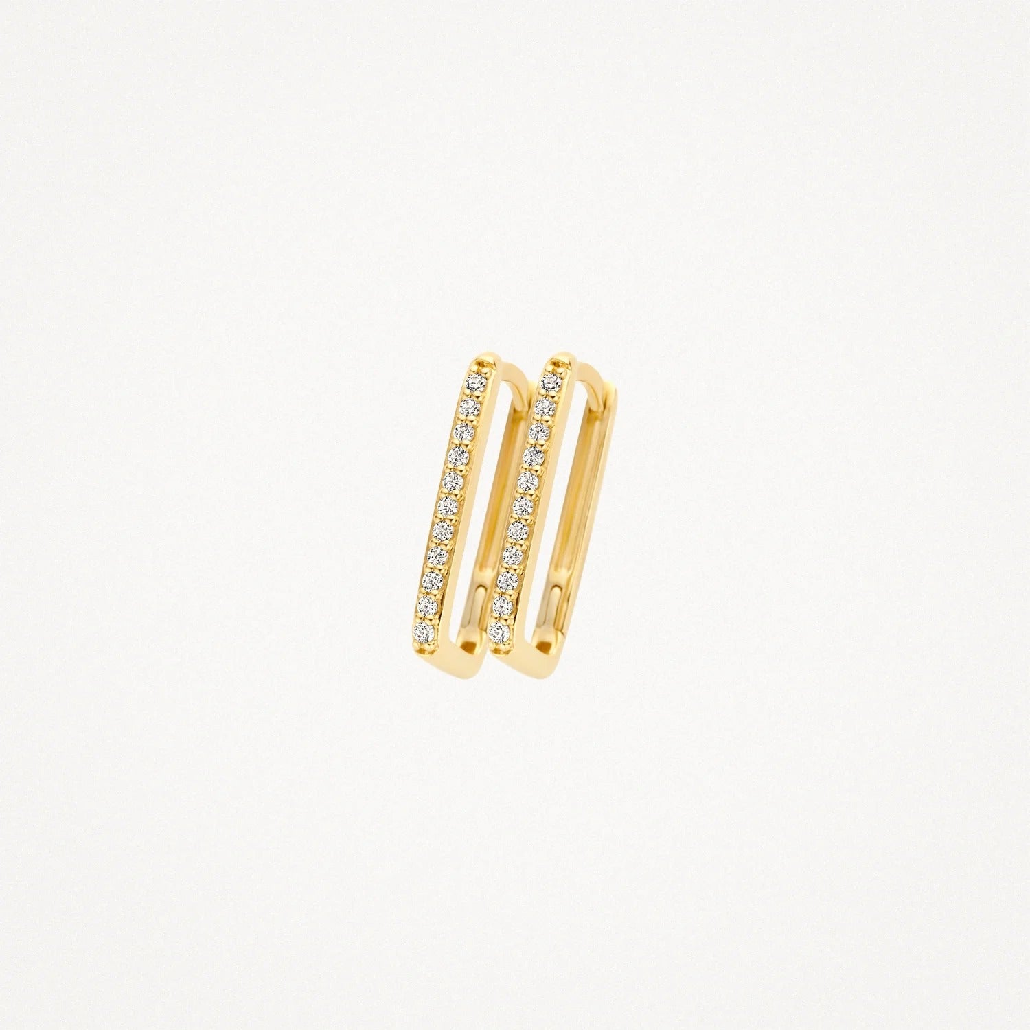 Elegante, rechteckige Ohrringe aus 585er Gelbgold, jeweils mit 11 Zirkoniasteinen in Pavé-Fassung besetzt. Die Form sorgt für moderne Klarheit, der Schnappverschluss für komfortables Tragen. Schön als Solostück oder kombiniert mit weiterem Ohrschmuck aus unserer Kollektion.